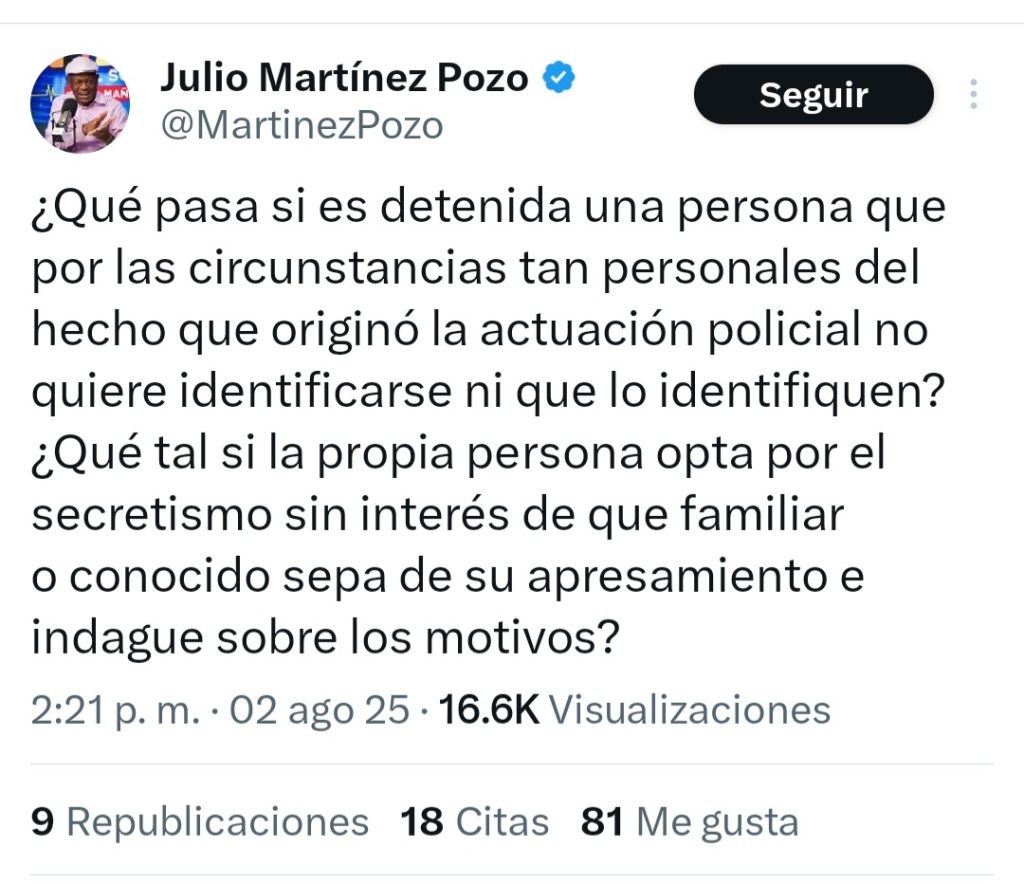 El comunicador Julio Martinez Pozo generó indignación en las redes al insinuar que el periodista de El Nuevo Diario detenido irregularmente por la Policia Nacional estaría ocultando los motivos reales por los cuales fue detenido y apresado por la Policia Nacional